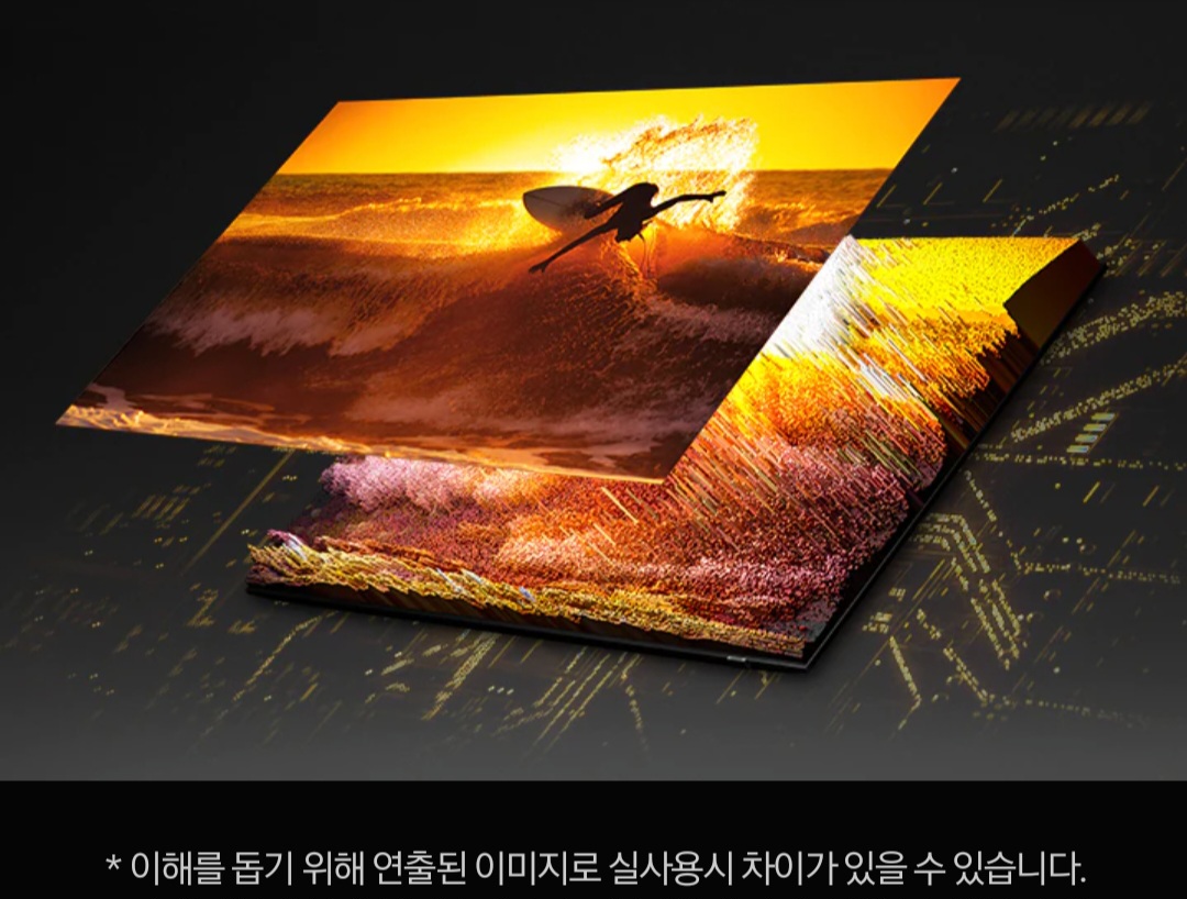 작은 퀀텀 mini LED로 화면이 커지면 선명도가 떨어진다는 점을 극복하였습니다.
