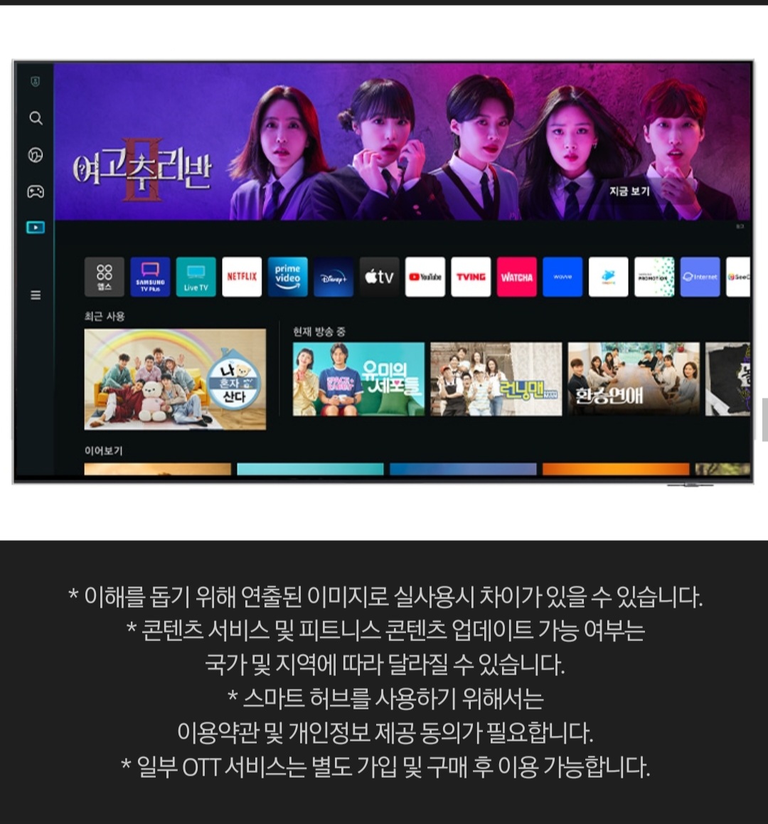 사실 기능은 많은데 그냥 TV로 활용하는거 같아서 아깝습니다.. 다음엔 4K Neo QLED인 일반 티비를 구매해서 스마트스틱을 꽂을까 생각중입니다.