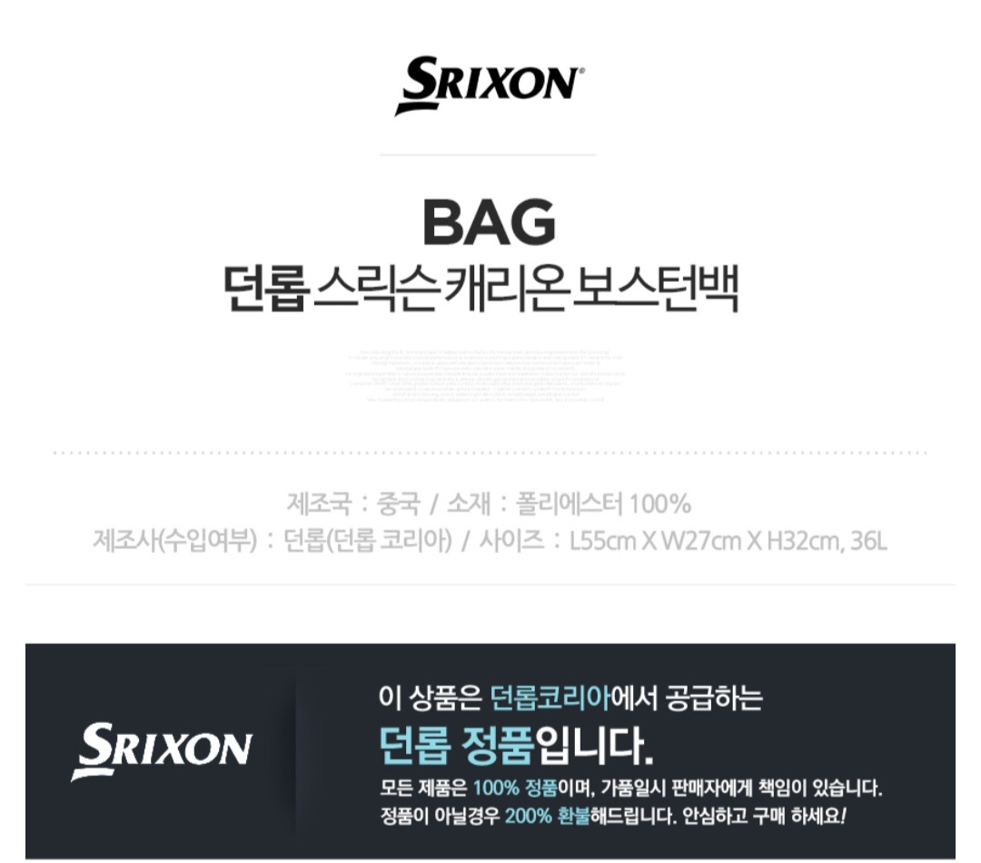 골프를 즐기는 분들이라면 스타일과 실용성을 모두 갖춘 골프백을 찾고 계실 텐데요. 오늘 소개할 제품은 던롭 스릭슨 캐리온 보스턴백 GGF 00525입니다!