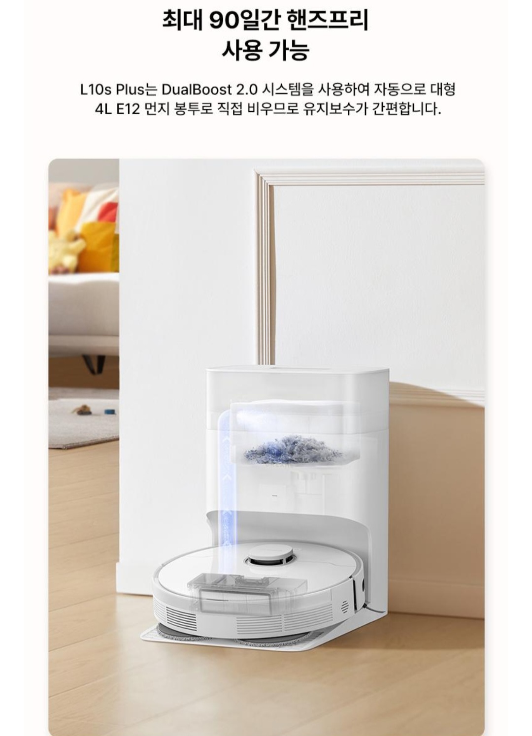 먼지통 비우는 번거로움 없이 완전 자동화 청소 가능